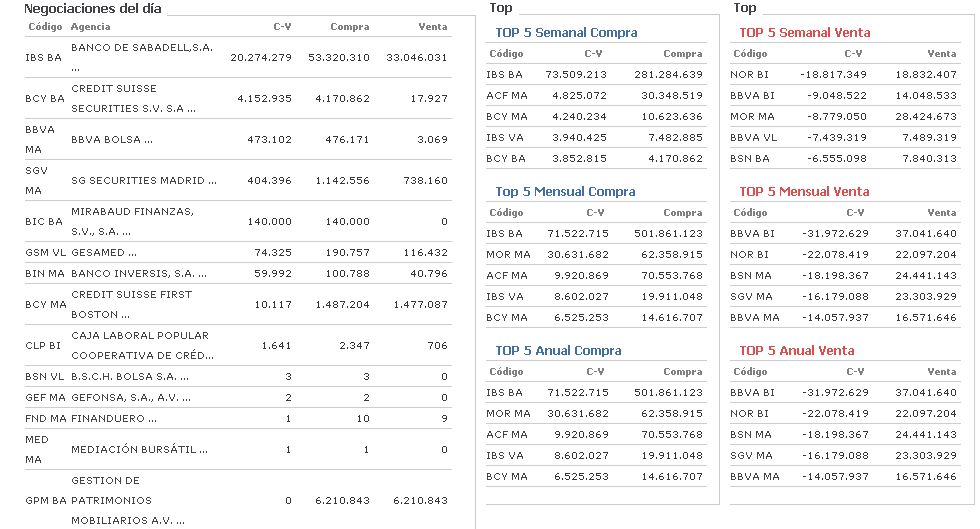 De igual forma, tenemos que destacar la operativa de IBERSECURITIES sobre la acción de Banco Sabadell, convirtiéndose en uno de los más vendedores en la jornada de hoy con 1.053.039 acciones vendidas, acumulando un saldo vendedor de 9,7 millones de acciones en balance semanal, que contrarrestan los 10,4 millones de acciones comprados en balance mensual. En resumidas cuentas, el incremento de autocartera anunciado hoy no es tal, ya que podemos comprobar como Banco Sabadell esta cerrando su posición y apenas le quedan unas 700.000 acciones para vender todo lo que ha comprado en el último mes.