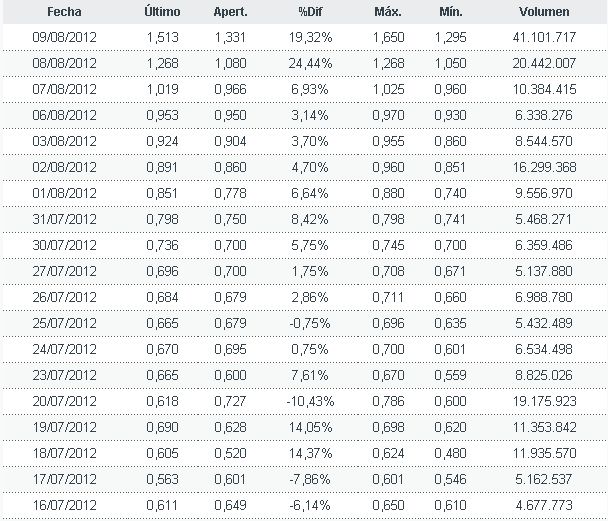 En pleno mes de Agosto nada debería sorprender a los pequeños inversores, que ya tendrían que estar acostumbrados a ver como determinados valores se convierten, aunque sea por unas semanas, en protagonistas indiscutibles del Mercado, algo que ya sucedió hace unos años, concretamente en Agosto de 2009 con los valores inmobiliarios, que en cuestión de una semana, acumularon revalorizaciones superiores al 60,0%.